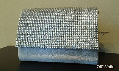 Rhinestones Flap Evening Bag in Polyester Satin in Off White