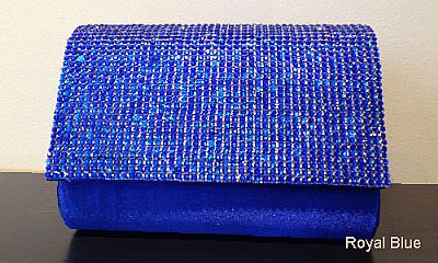 Rhinestones Flap Evening Bag in Polyester Satin in Royal Blue