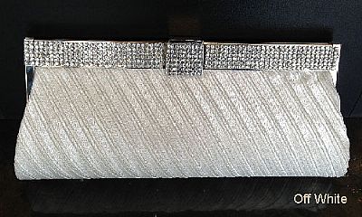 Diagonal Patterned Evening Bag with Rhinestones Metal Trim in Off White