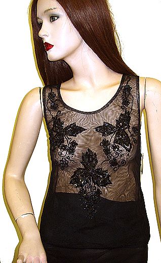 SLEEVELESS NET TOP WITH TRI FLORAL BEADWORK