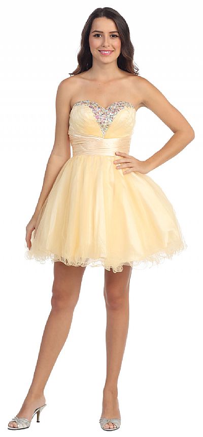 STRAPLESS SEQUINED BUST SHORT TULLE PROM PARTY DRESS