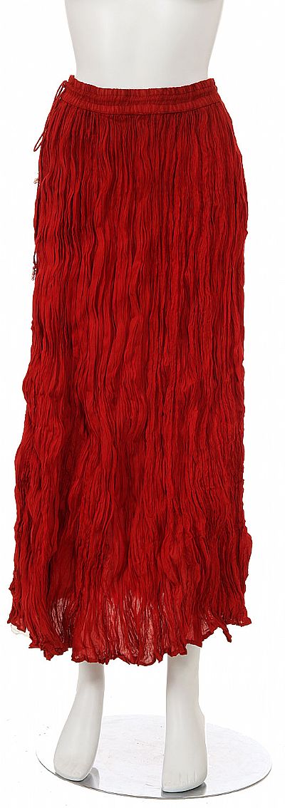 Full length skirt entirely crinkled, assembled with an elastic band. Made of 100% Cotton. Imported.