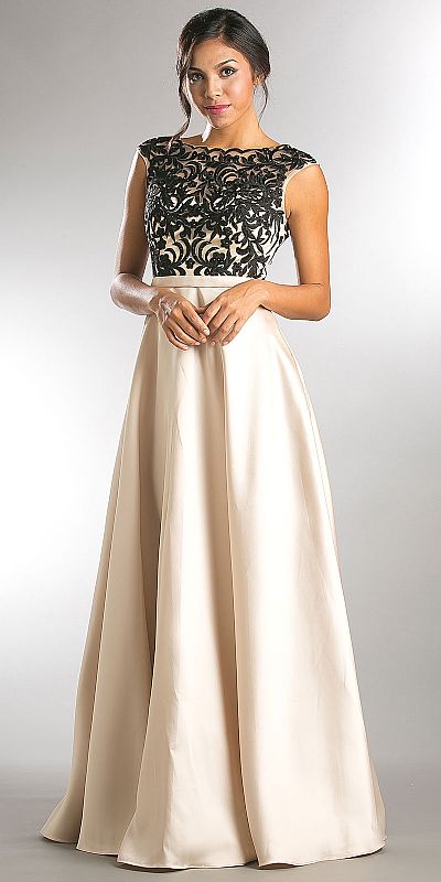 | BOAT NECK MESH EMBROIDERED TOP LONG FORMAL EVENING DRESS (item #a257)