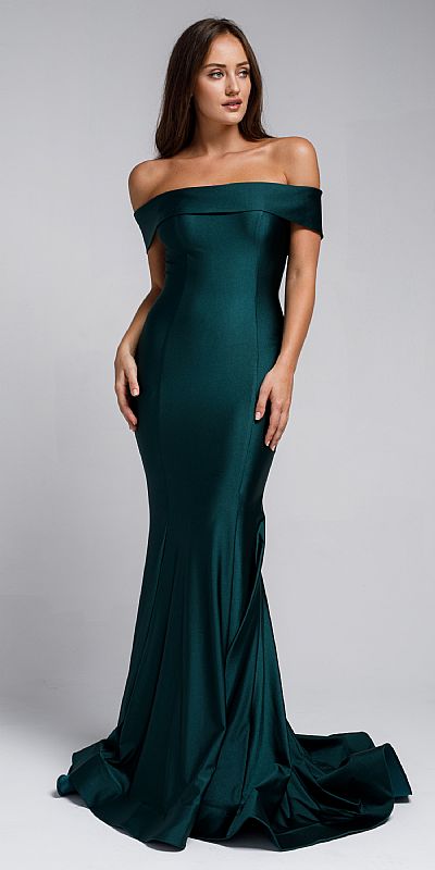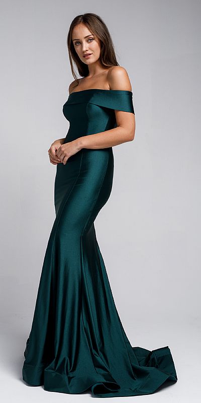 OFF SHOULDER FITTED PROM GOWN (item #a373)