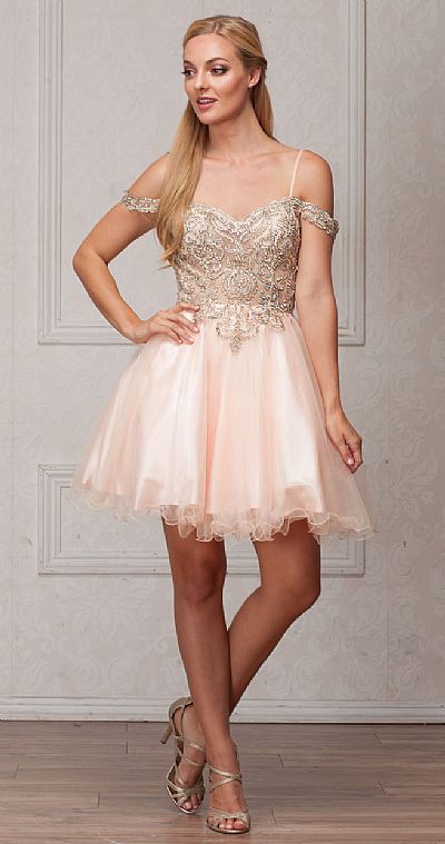 | SPAGHETTI STRAPS COLD-SHOULDER BEADED TULLE SHORT PROM DRESS (item #a568)