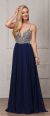 Bejeweled Bodice V-Neck Spaghetti Straps Formal Prom Dress. Pearls, beads & rhinestones decorate the sheer mesh top with deep v-neck. Spaghetti straps are also embellished. Layered polyester chiffon skirt is flowing & floor length with back zipper closure. Padded bust. Imported.