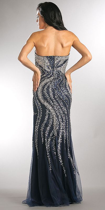 | STRAPLESS BEJEWELED BODICE MESH LONG FORMAL PROM DRESS (item #a734)