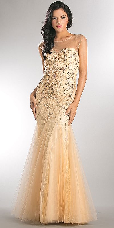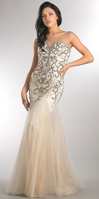 | BEADED MESH TULLE MERMAID STYLE LONG PROM PAGEANT DRESS (item #a747)