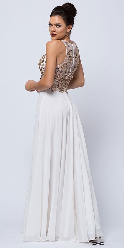 Sleeveless Floral Accent Beaded Top Long Prom Dress back