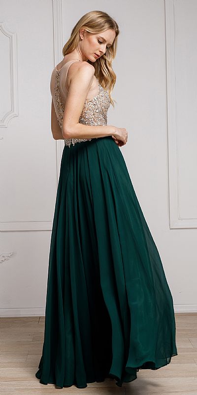 SEQUINED PLUNGING NECKINE PROM GOWN (item #a784)