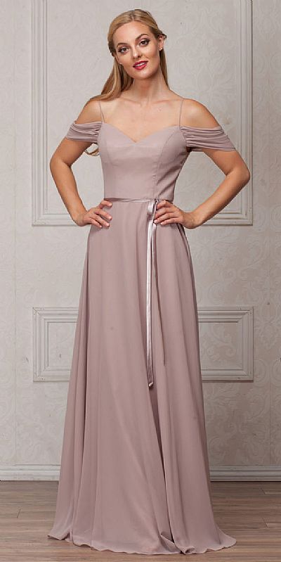 SPAGHETTI STRAPS COLD-SHOULDER LONG BRIDESMAID DRESS (item #a824)