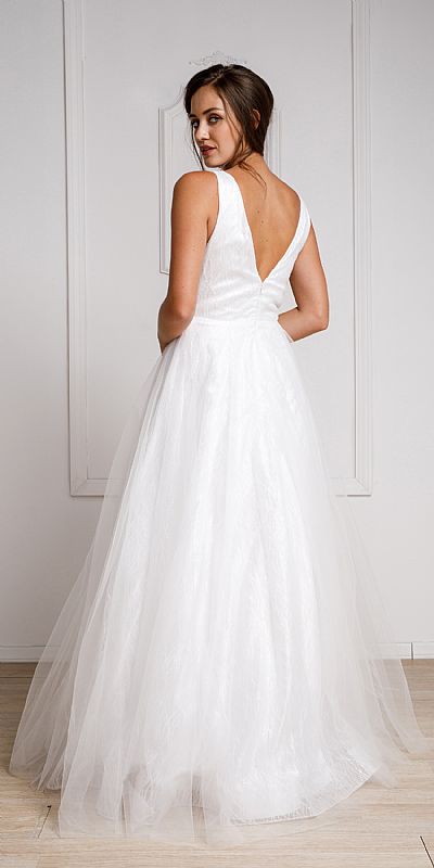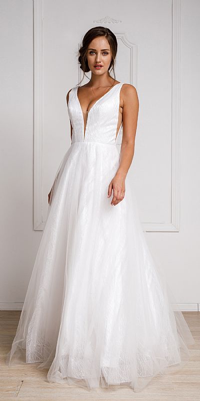 V NECK VINES PATTERN TULLE PROM GOWN (item #ar010)