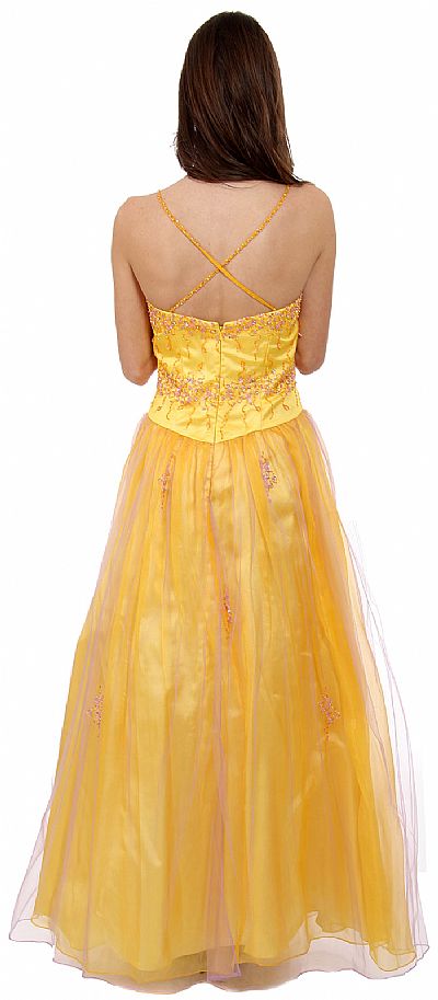 | CROSSED BACK AND BEADED LONG PROM GOWN (item #c26659)