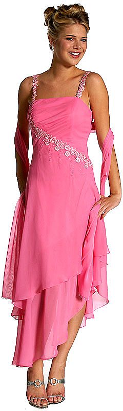| FLORAL PINK ASYMMETRIC LAYERED PROM DRESS (item #c27295)