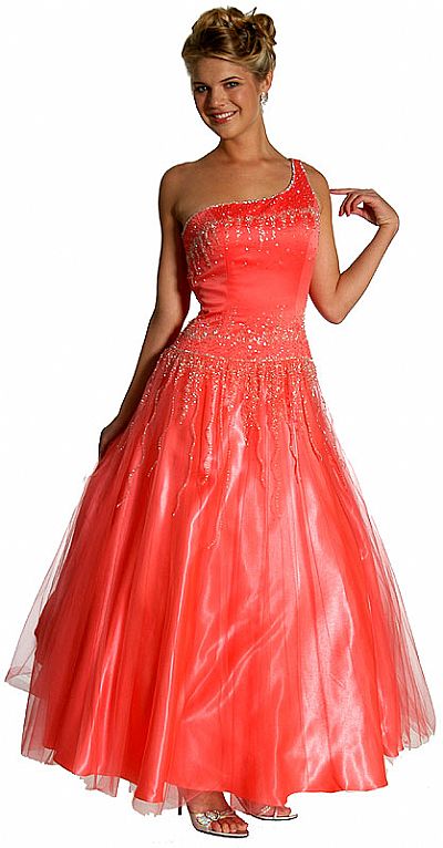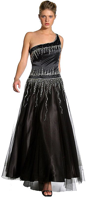 | SINGLE SHOULDER & SILVER BEADED PROM DRESS (item #c27334)