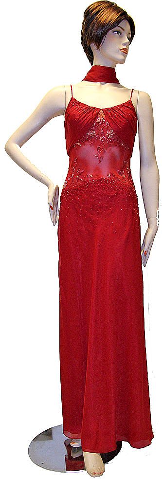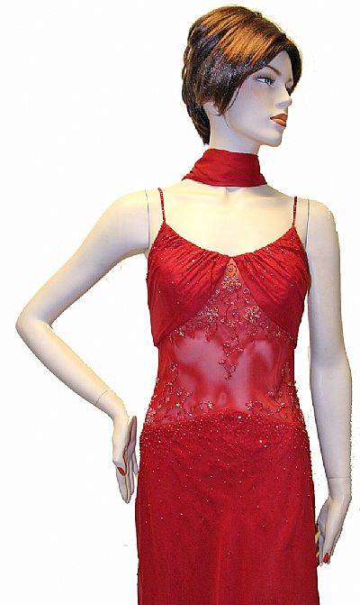 Elegant beaded dress with with rouched bodice. Waist is see-thru made of English Net.