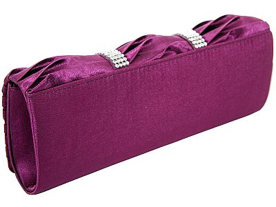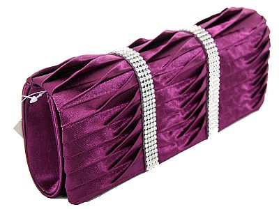 RHINESTONE EMBELLISHED SATIN EVENING BAG IN PURPLE