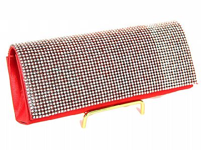 Sparkling red clutch embellished with rhinestones. Measures: 9 x 3.5 x 2 inches