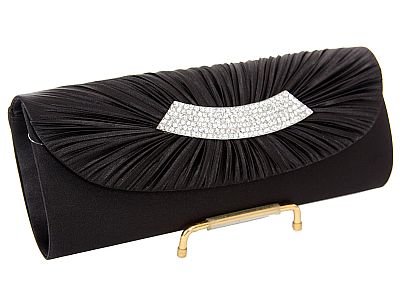 RHINESTONE EMBELLISHED SATIN EVENING BAG IN BLACK
