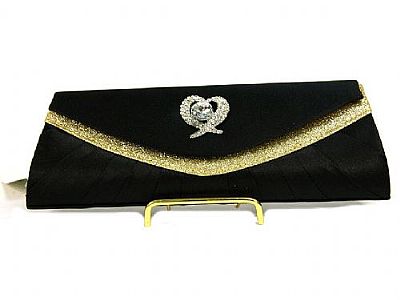 All Occasion Satin Evening Bag in Black/Gold