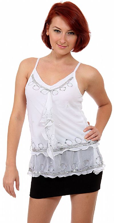 RUFFLED AND BEADED SPAGHETTI STRAPPED TOP