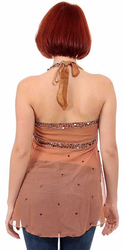 Halter Neck Sequined Top with Round Beadwork Patch back