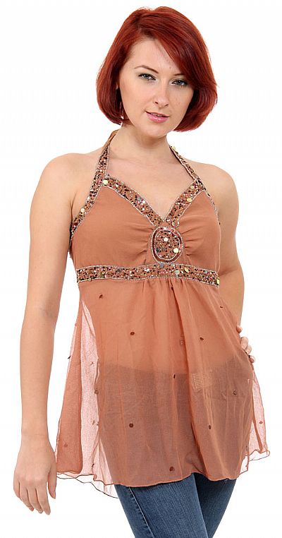 Main image of Halter Neck Sequined Top with Round Beadwork Patch