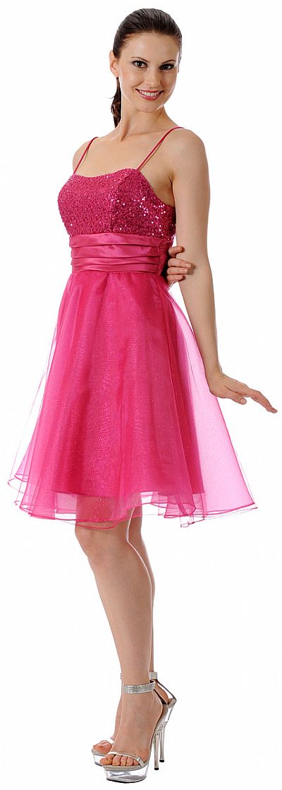 | SEQUIN BODICE CRYSTAL MESH SKIRT SHORT PARTY DRESS (item #p7730)