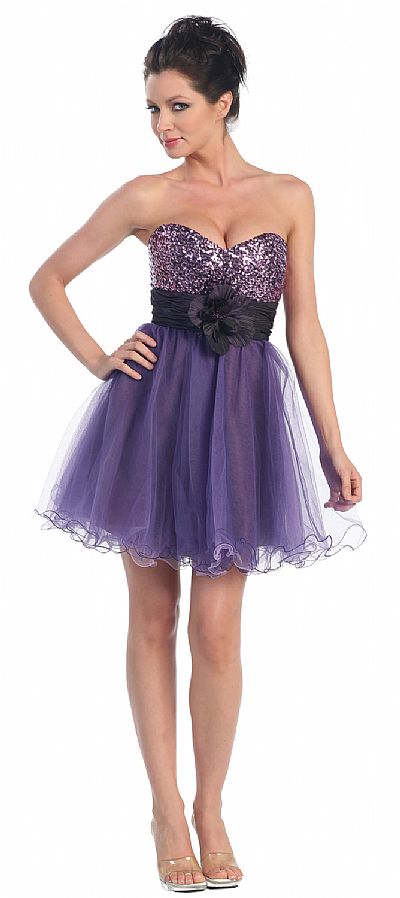 | STRAPLESS FLOWERED WAISTLINE SEQUIN PARTY DRESS (item #p8000)