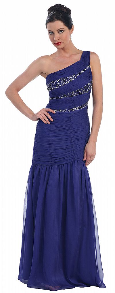 | ONE SHOULDER RUCHED BODICE MERMAID FORMAL DRESS (item #p8119)