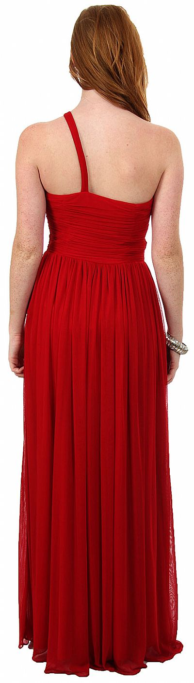 | SINGLE SHOULDER SHIRRED BROOCH FORMAL PROM DRESS (item #p8323)