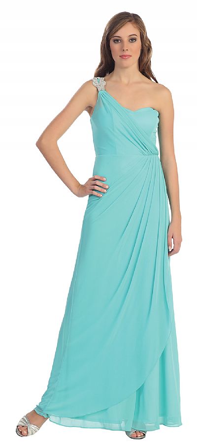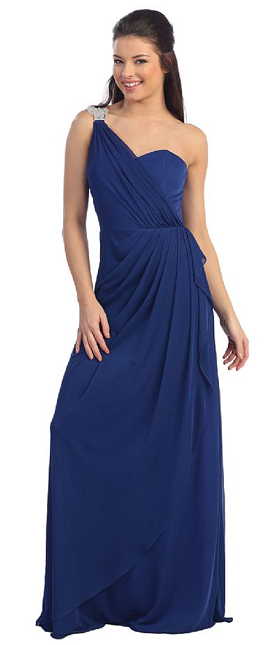| ONE SHOULDER DRAPED PROM COCKTAIL DRESS WITH BEJEWELED STRAP (item #p8349)