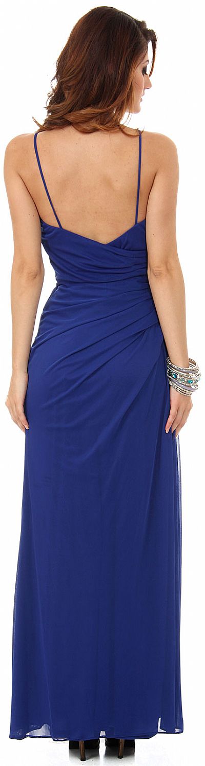 | SPAGHETTI STRAPS GATHERED LONG FORMAL HOMECOMING DRESS (item #p8508)