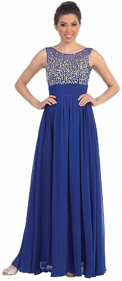 | BEJEWELED MESH TOP LONG FORMAL PROM DRESS (item #p8737)