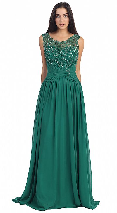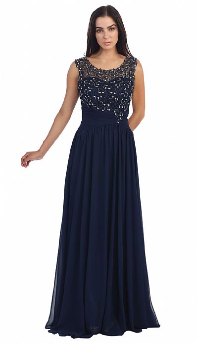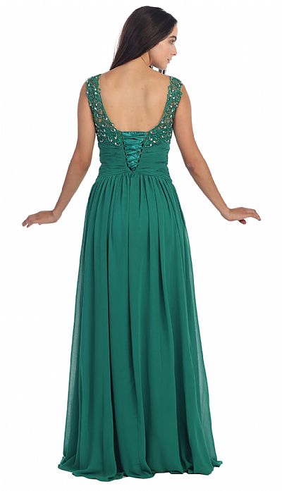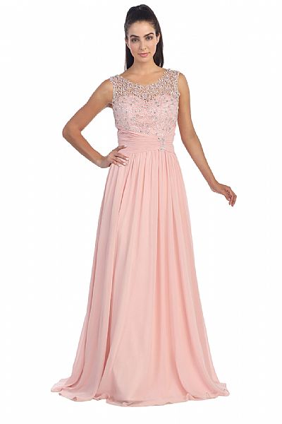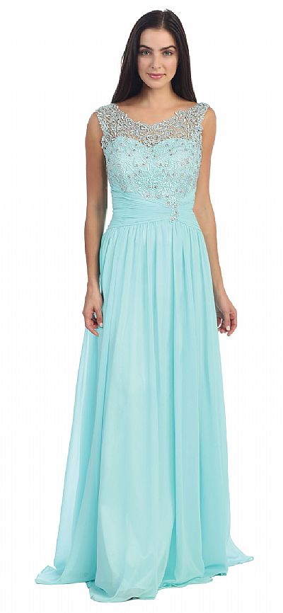 | ROUND NECK LACE BEADED BODICE LONG FORMAL PROM DRESS (item #p8816)