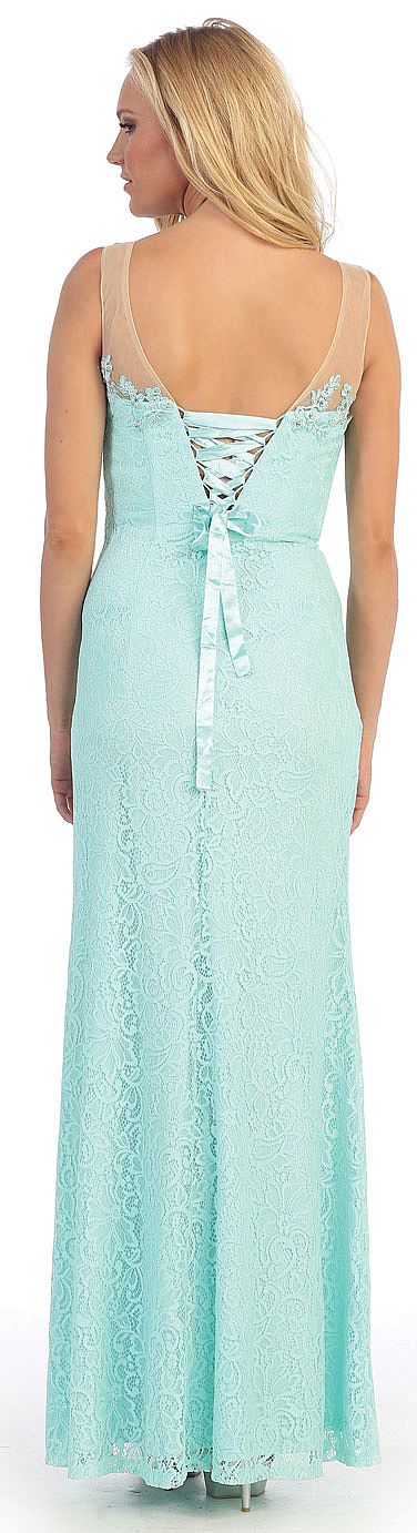 | ROUND NECK LACE FORMAL PROM DRESS WITH FLORAL CUTOUT DESIGN (item #p8841)