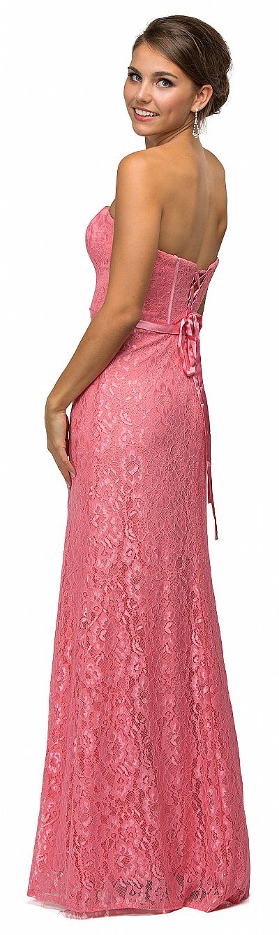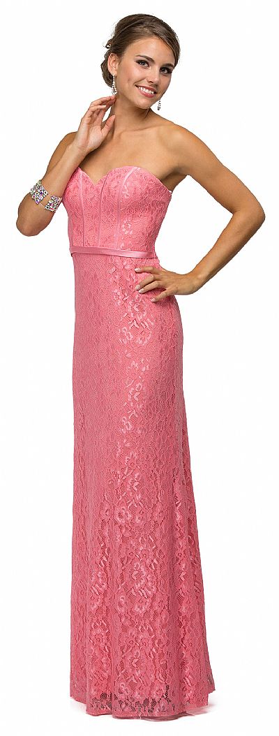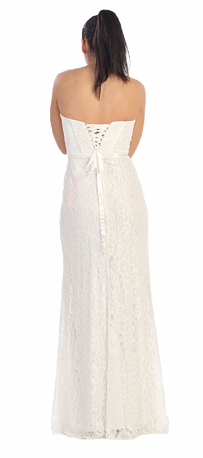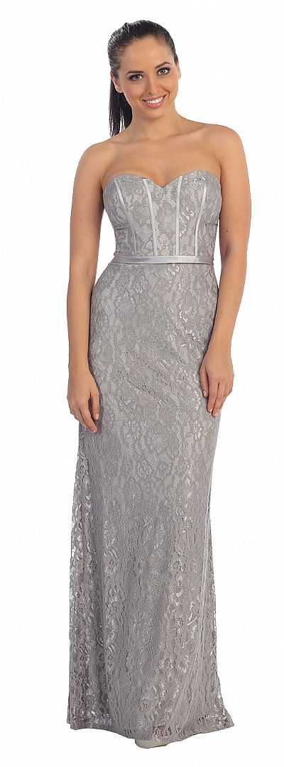 | STRAPLESS SWEETHEART NECK LONG LACE FORMAL BRIDESMAID DRESS (item #p9062)