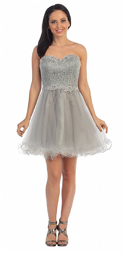 | STRAPLESS LACE BUST SHORT BABYDOLL HOMECOMING PARTY DRESS (item #p9082)