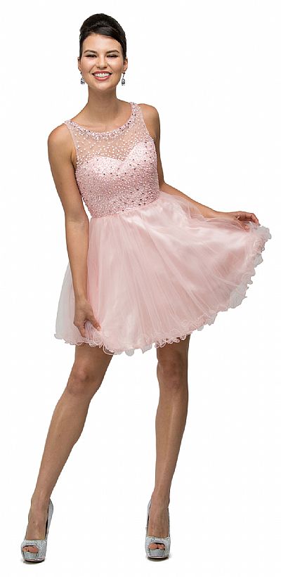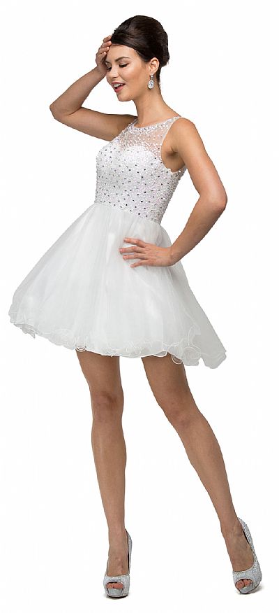 | BEJEWELED BUST SHORT BABYDOLL HOMECOMING PARTY DRESS (item #p9118)
