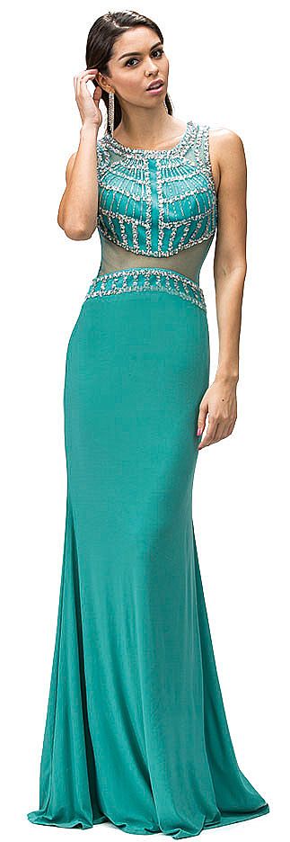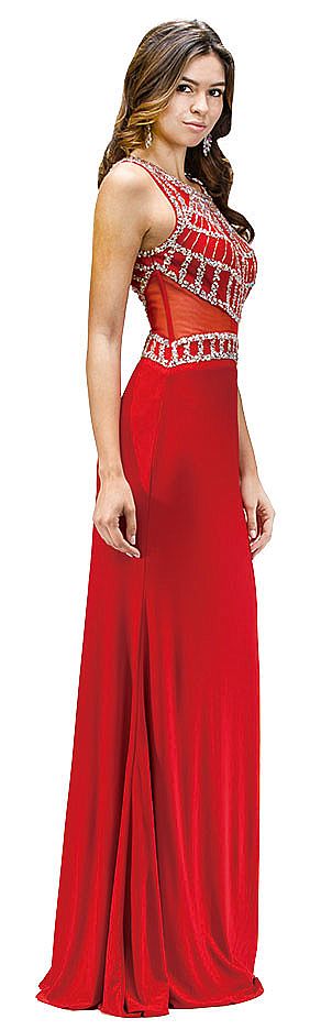 | BEJEWELED TOP SHEER WAIST FLOOR LENGTH PROM DRESS (item #p9230)