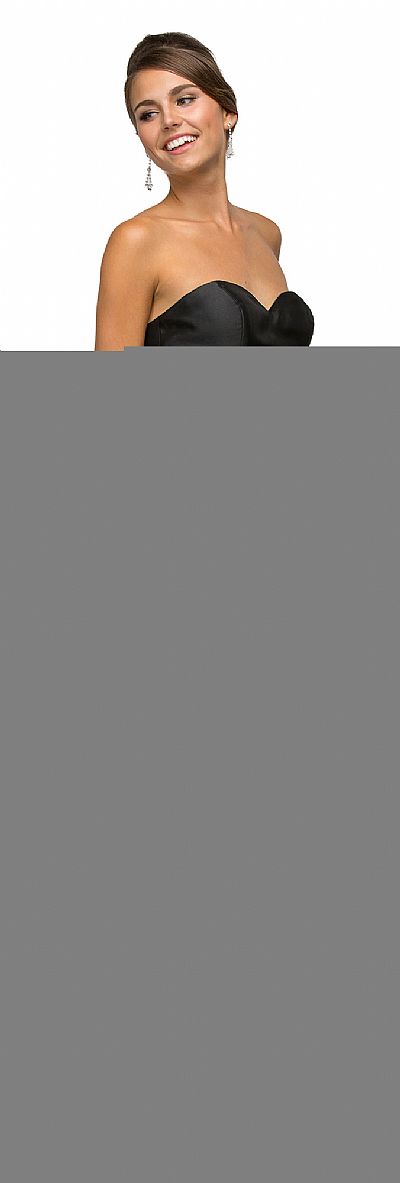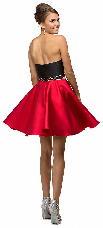 Strapless Sweetheart Two Tone Short Homecoming Party Dress. Sweetheart neckline dress has jewel embellished waist with bra cups. 28" long polyester satin dress has flared skirt with back zipper closure. Imported.