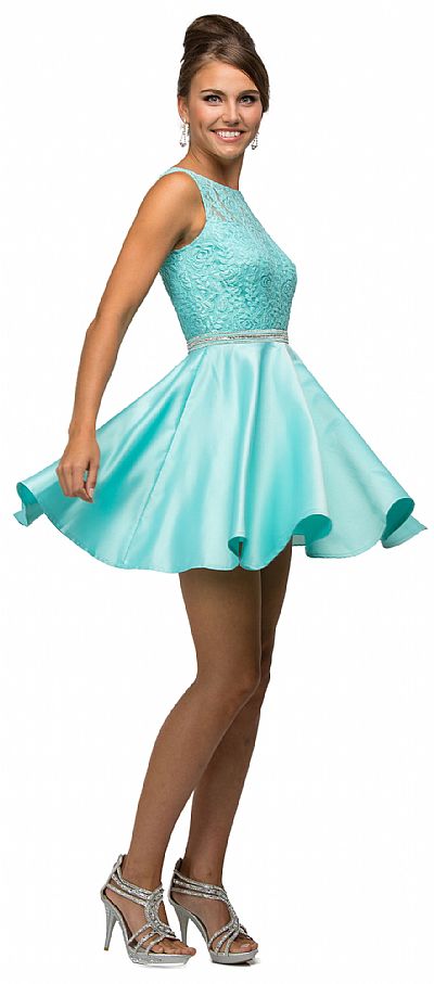 | LACE BODICE BEADED WAIST SHORT HOMECOMING GRADUATION DRESS (item #p9503)