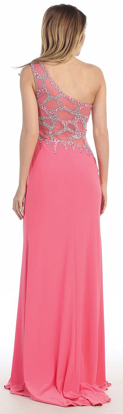 | ONE SHOULDER WEB BEADED PATTERN LONG PROM PAGEANT DRESS (item #pc3272)