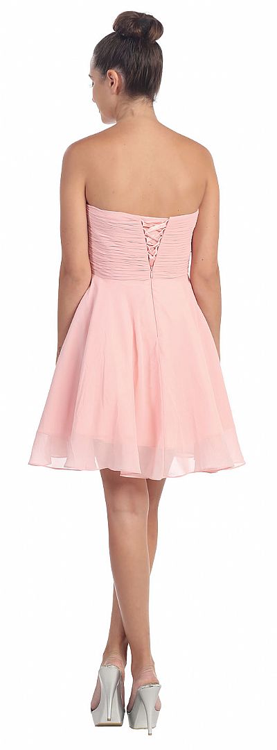 Strapless Shirred Beaded Bust Short Formal Prom Dress back