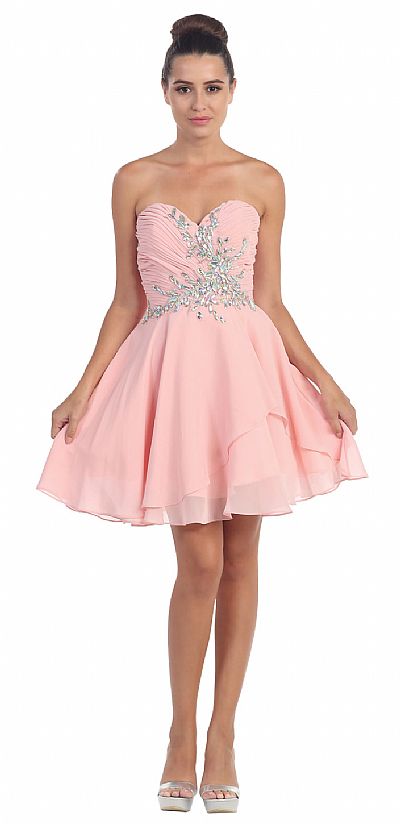 Strapless Shirred Beaded Bust Short Formal Prom Dress in Blush