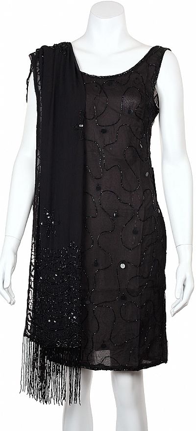 BLACK SEQUIN BEADED SHAWL WITH HANGING BEADS