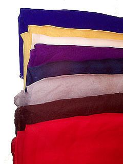 100% natural silk (chiffon) bordered with beads. Measurements: 93 inches x 21 1/2 inches.