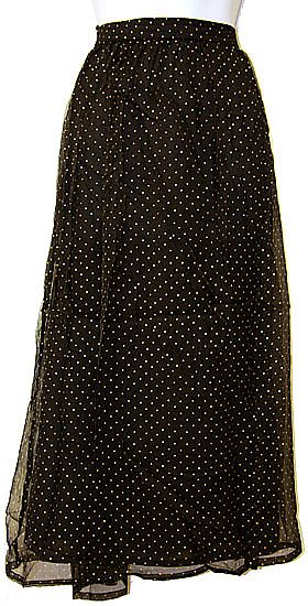 Gold Polka Dots Print Long Polyester Skirt with Elastic Waist. Fully Lined.Length is 35 inches. Imported.