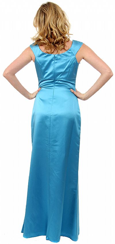 An all occasion dress, slightly beaded top. Full length with a boat neckline and a back zipper closure. 100% Polyester. Imported.